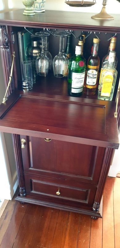The cabinet arrived in perfect condition and is incredibly practical for organizing, storing, and displaying bar essentials.
