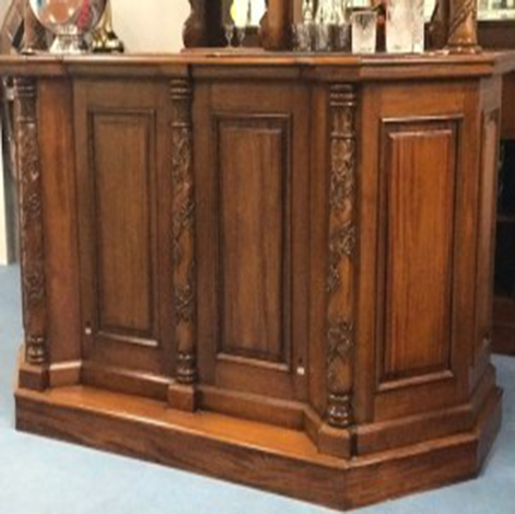 This extraordinary bar, scaled for home use, offers abundant space for all your storage needs. Its substantial, honey-stained, distressed mahogany construction reflects timeless craftsmanship and beauty. Our Solid Mahogany Bars are meticulously handcrafted, adding historical elegance to your living space.
