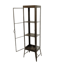 - Display your favorite collectibles and décor in style with this vintage loft industrial style retro iron display cabinet.