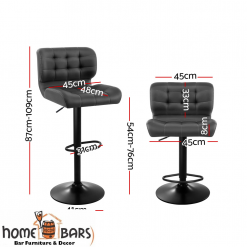 Set of 2 Kitchen Bar Stools Gas Lift Plush PU Leather – Black and Grey