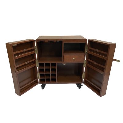 Crafted with attention to detail, this bar cabinet features a luxurious leather exterior that adds a touch of sophistication to any space. The wheels provide effortless mobility, allowing you to easily transport the cabinet from one room to another, ensuring convenience and flexibility during your social gatherings.