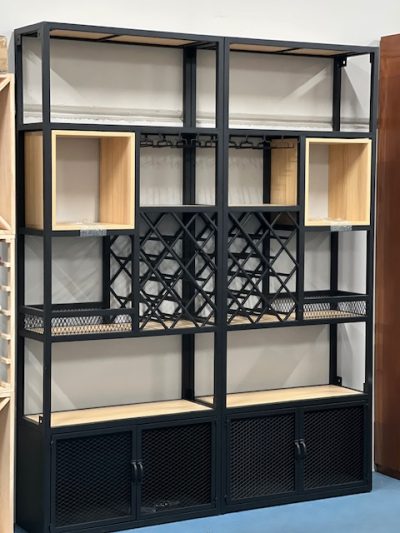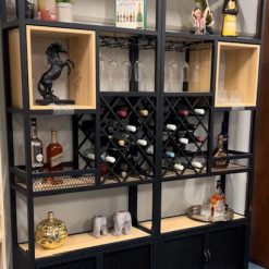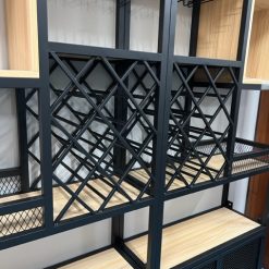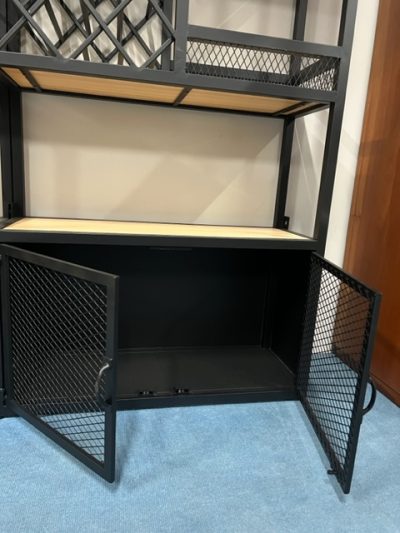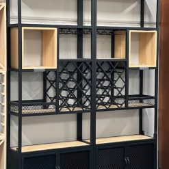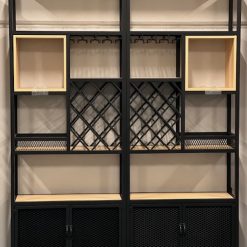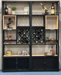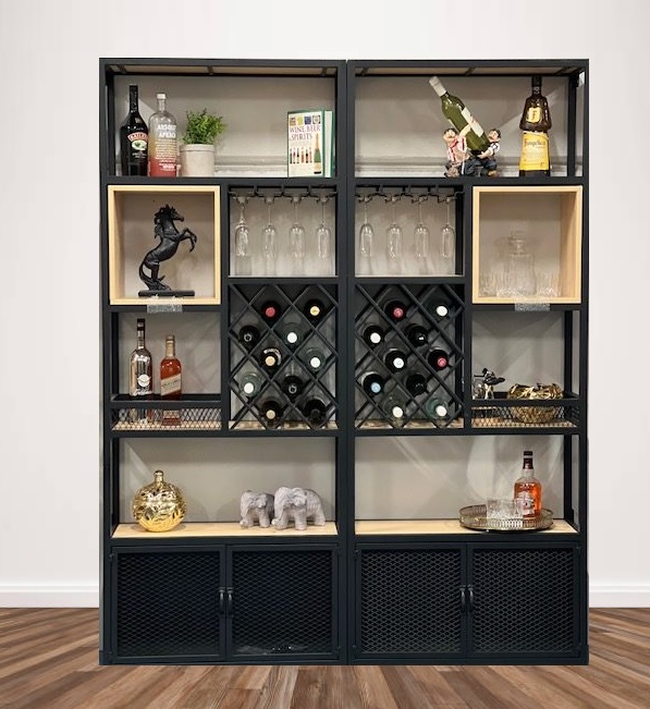 The Milan Drinks Cocktail Bar Cabinet features a mix of open shelves and cabinets, ensuring you have plenty of room to store and organize your wine and bar essentials. Whether it’s wine bottles, liquor, glasses, or dishes, this cabinet can accommodate it all. The top and bottom shelves showcase a mix-match design, adding a touch of uniqueness to your storage solution. Additionally, the industrial mesh door not only adds a hint of edginess to the cabinet’s design but also provides additional storage space.