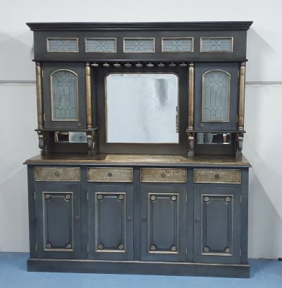 Colour – Dark Grey, with chrome highlights. Counter top with crackle look paint