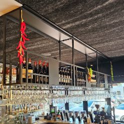 Hanging Ceiling Mounted Liquor & Wine Bottle Holder with Adjustable Height to 50cm without arms 108cm – 150cm with adjustable arms